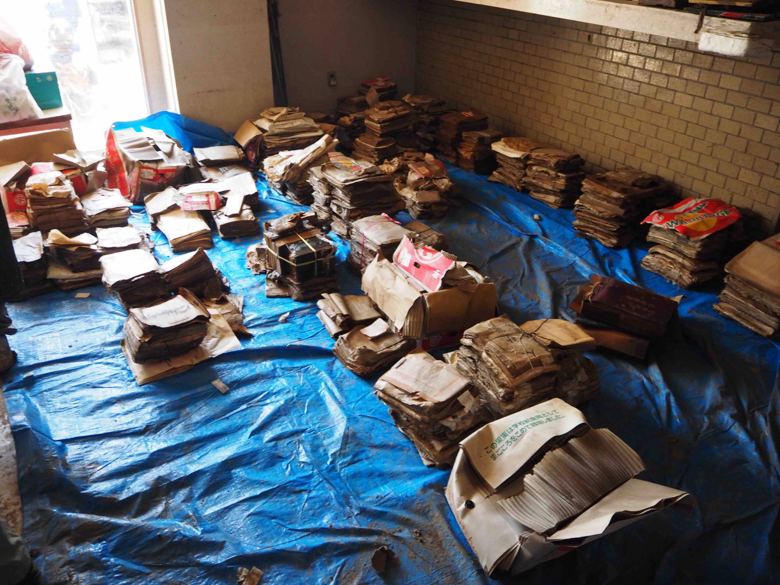 愛媛資料ネットは、西日本豪雨に際して、浸水被害を受けた県内の歴史資料救出を行いました。そのひとつに、宇和島市立間公民館に保管されていた大量の歴史資料があります。106箱もの文書の腐敗を防ぐため、愛媛大学es-BANKの協力を得て、大型冷蔵庫に移し、毎週少しずつ修復と内容調査に努めてきました。